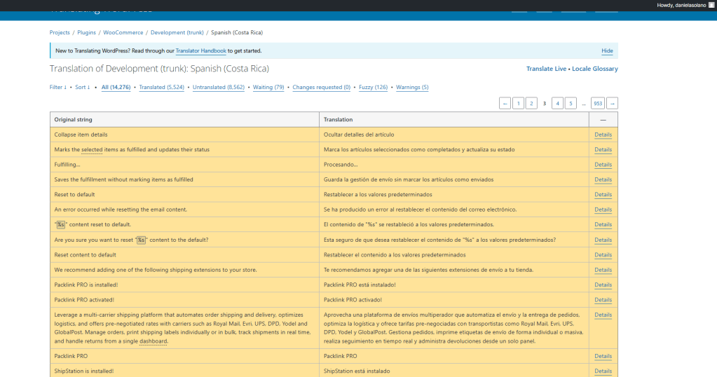 Por otro lado, como resultado, logré contribuir con varias traducciones dentro de la plataforma. Aproximadamente unas 50 strings traducidas.